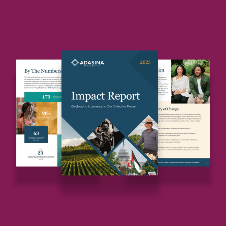 Adasina Social Capital creates innovative investment products that seek aligned social justice returns. Working in direct partnership with the communities most impacted, Adasina is transforming public markets into a powerful force for social justice.